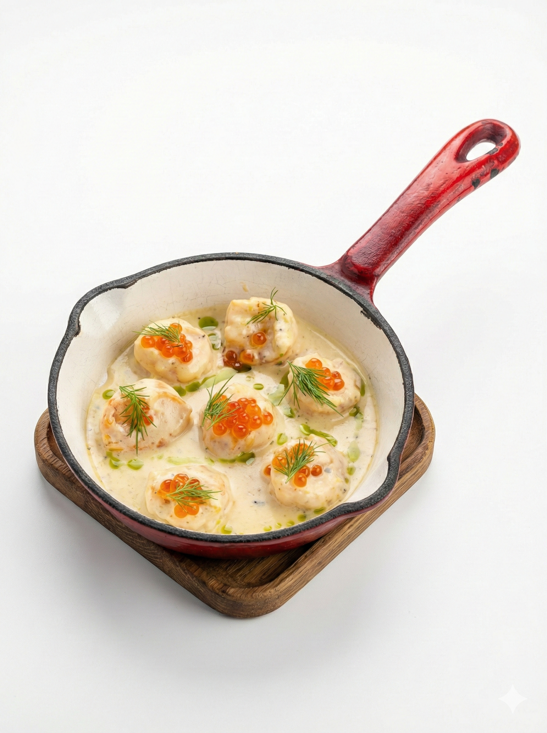 Креветки в сливочном соусе с Дорблю и красной икрой