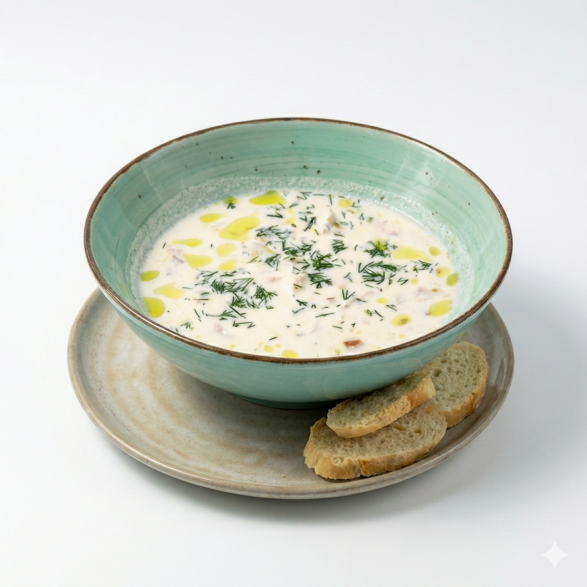 Уха сливочная (подается с гренками)