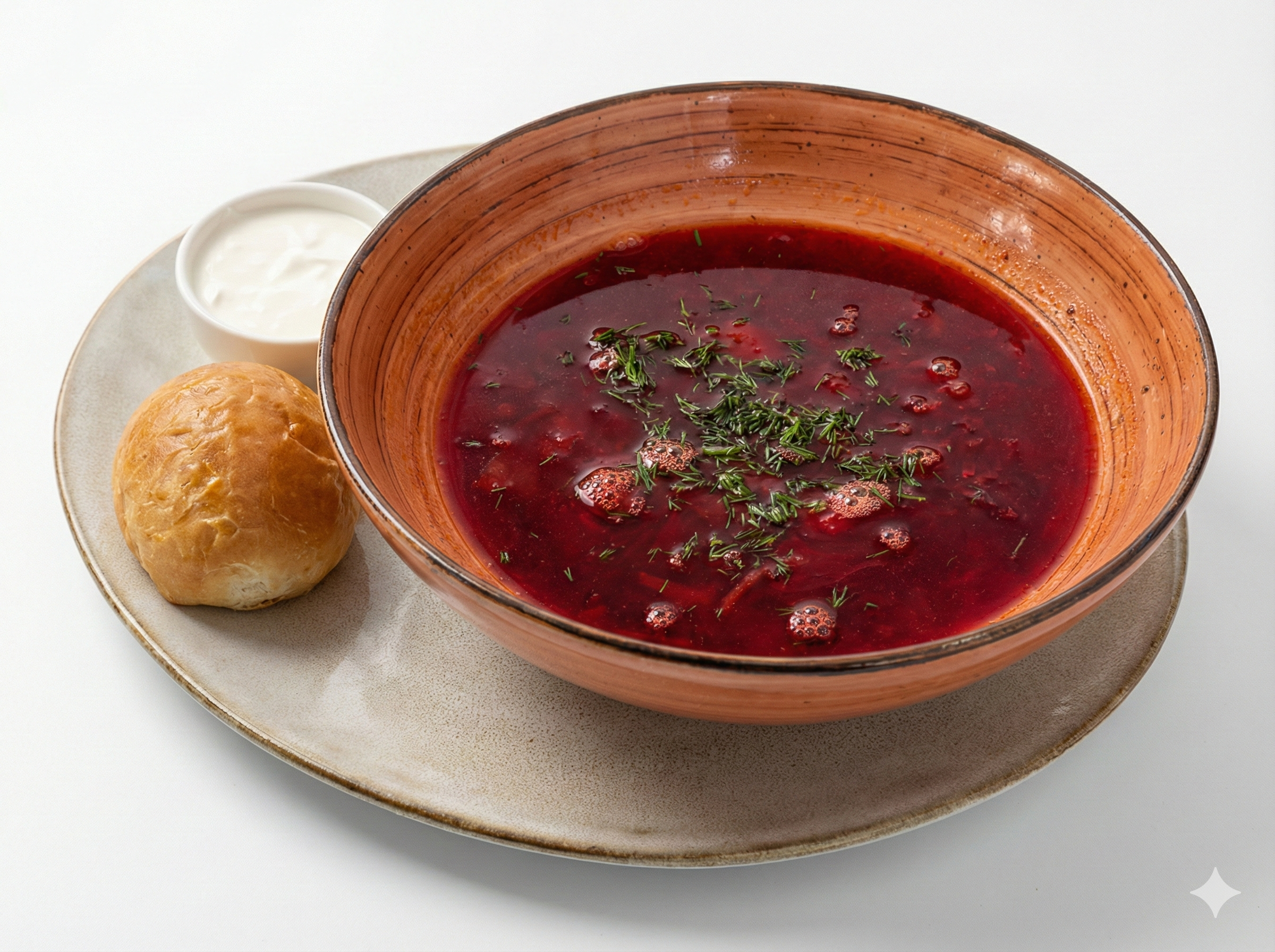 Борщ (подается со сметаной и пампушкой)